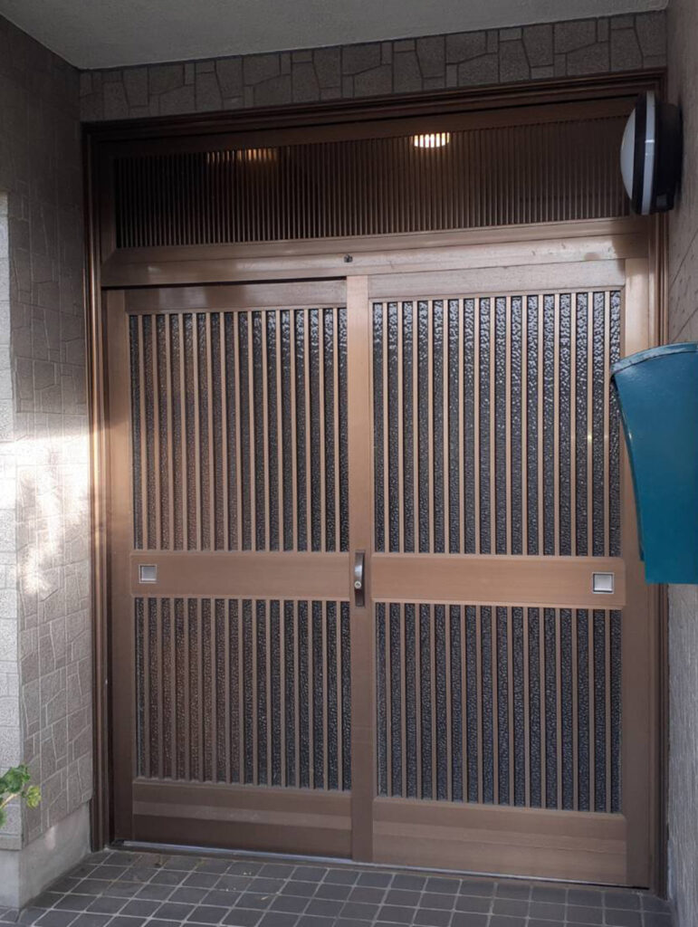 玄関は古かった引き戸から開き戸に変え、防犯上も安心。なおかつサイドはすりガラスをいれて暗くなりがちな玄関でも採光がしっかりとれるようにしました。
